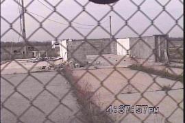Parking lot removed - now grass covered, buildings destroyed, hanger missing.