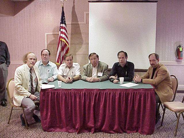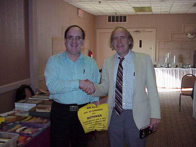 Bruce on UFO Pannel Bordentown, NJ, 2002, NJ; Dr. Bruce Maccabee and Dr. Bruce Cornet.